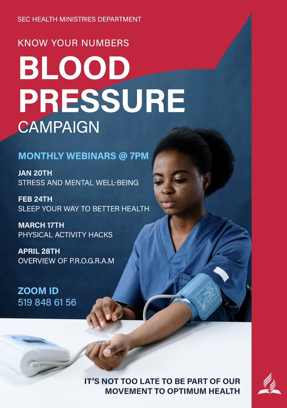 The SEC Health Ministries team seeks to raise awareness of this condition by encouraging all church members and guests to have their blood pressure checked and attend monthly online webinars. These sessions will highlight how lifestyle interventions can prevent and sometimes reverse high blood pressure.